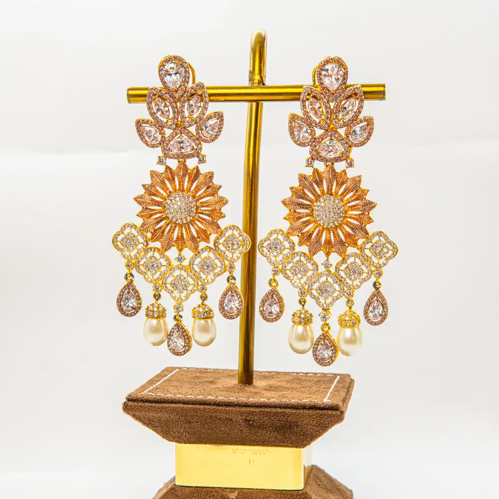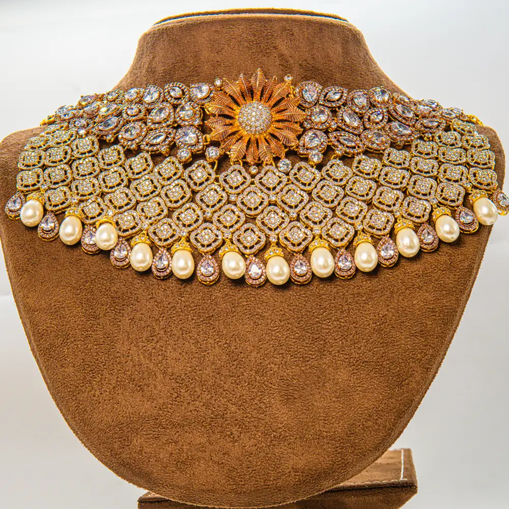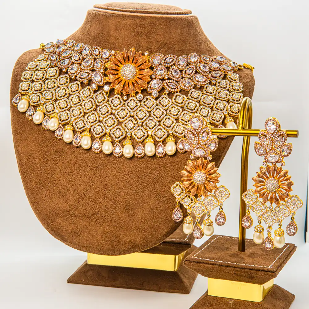 Design: Intricately handcrafted bridal necklace and earrings with luxurious detailing