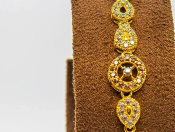 Elevate your jewelry collection with this elegant 21K gold bracelet from Gehnay Jewellers. Expertly crafted with precision and fine detailing, this bracelet blends modern charm with classic sophistication—making it a perfect accessory for both everyday wear and special occasions.