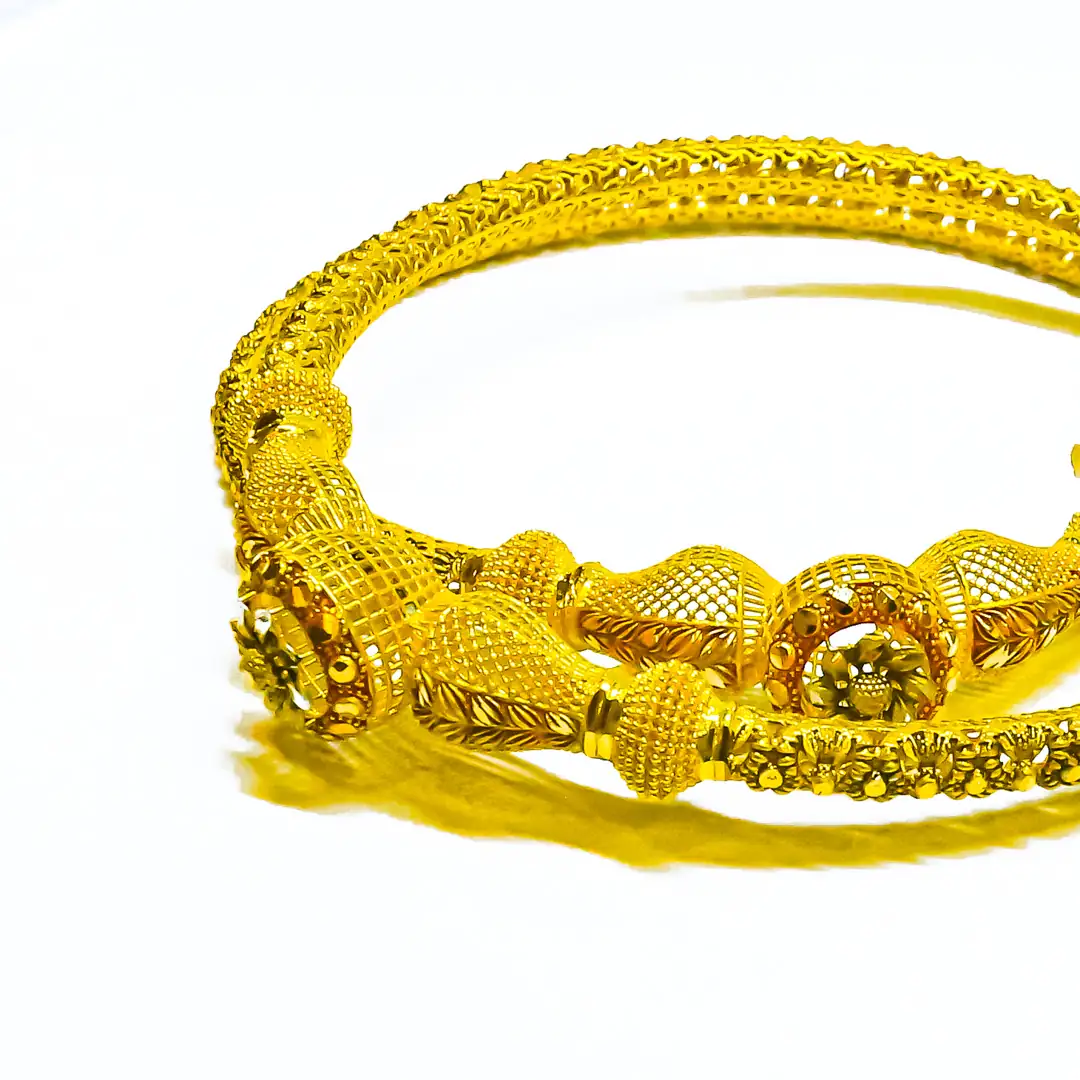 Experience the essence of tradition and elegance with this exquisite 21K gold Kara from Gehnay Jewellers—where craftsmanship meets timeless style.