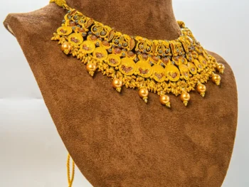 A beautifully handcrafted 21K gold necklace set from Gehnay Jewellers—perfect for weddings, celebrations, and timeless elegance.
