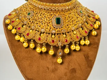 A premium 21K gold Bridal Set from Gehnay Jewellers, featuring intricate craftsmanship, radiant shine, and timeless bridal elegance.