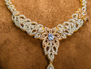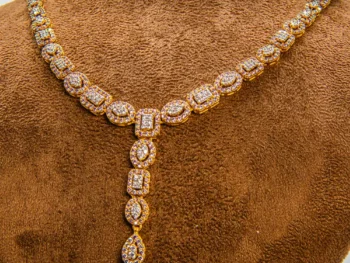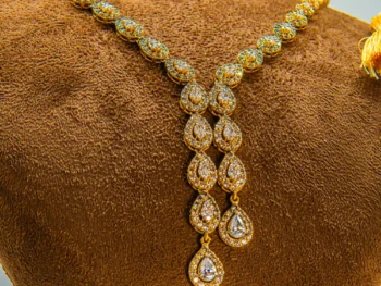Celebrate timeless beauty with this exquisite 21K gold necklace set from Gehnay Jewellers—designed to elevate your look with unmatched grace and brilliance.