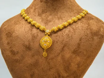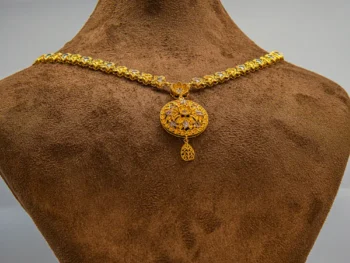 A beautifully handcrafted 21K gold necklace set from Gehnay Jewellers—perfect for weddings, celebrations, and timeless elegance.